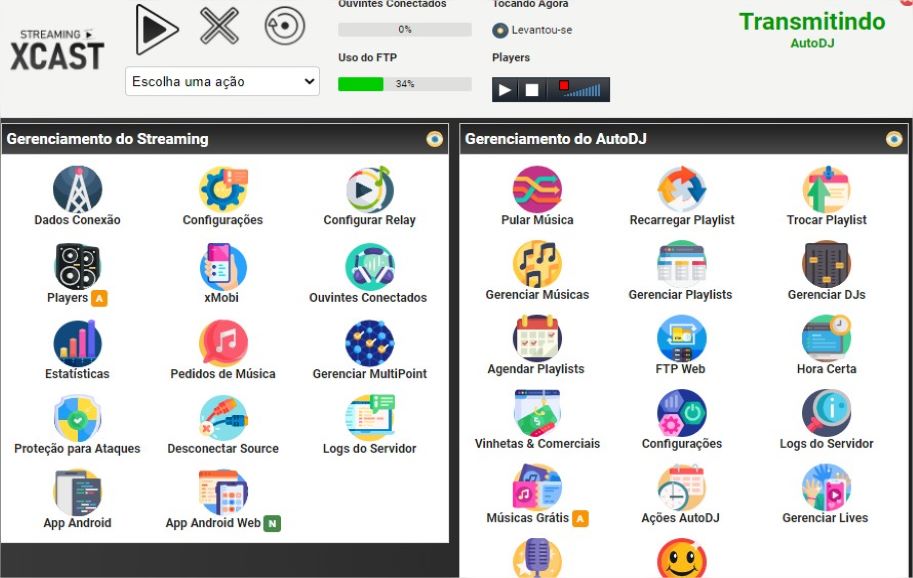 Painel Yes it Web / XCAST. Você pode realizar a transmissão de sua rádio para os usuários da internet.